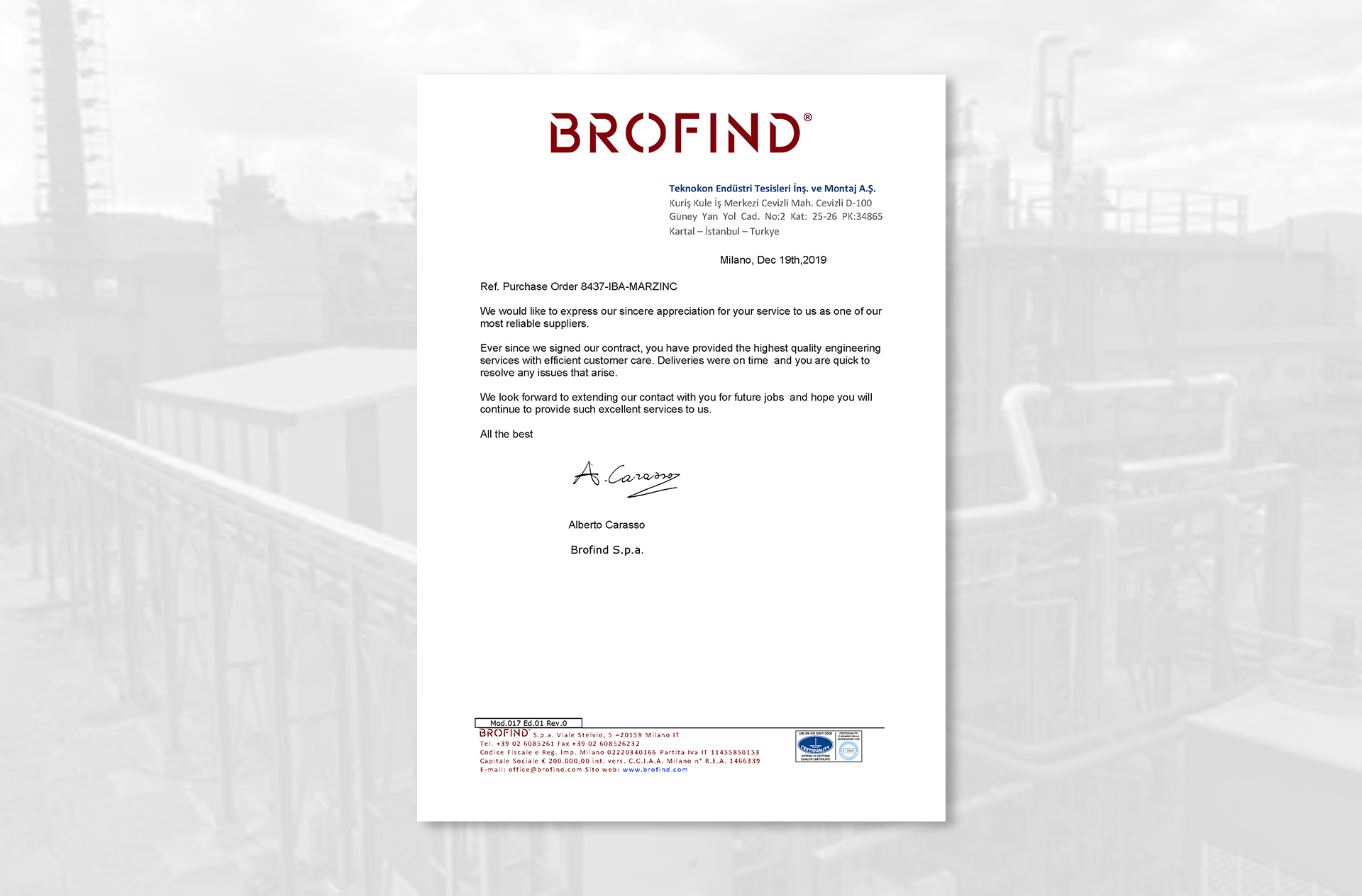 Marzinc’in, Karabük’te bulunan metal geri kazanım tesisi içerisinde Brofind’in mühendisliği ile su arıtma tesisi Teknokon tarafından kurulmaktadır. Teknokon kendi kapsamını başarıyla tamamladıktan sonra, tesisin devreye alınmasına destek vermiştir.
